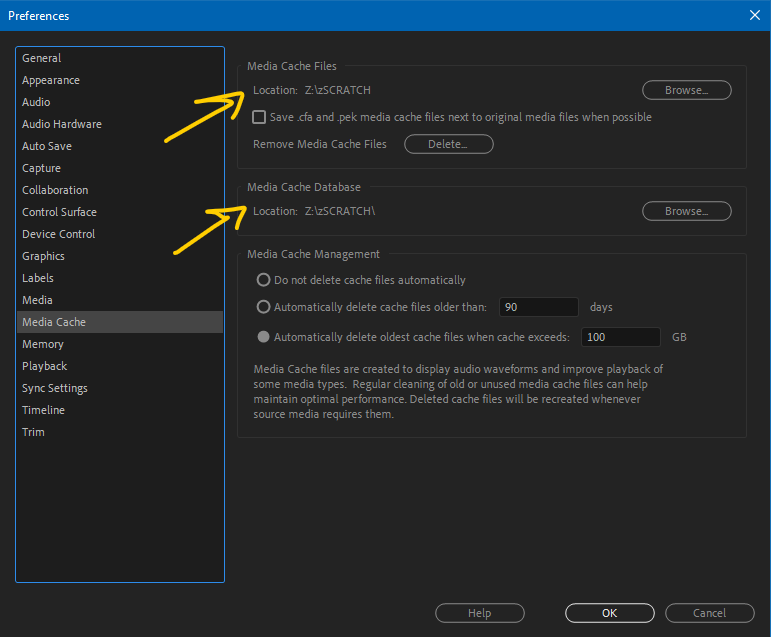 Similar to scratch disks, I point my media cache and database to a separate fast drive. I also point it to the same scratch folder as my scratch disks so I can easily find these files in case of any troubleshooting.