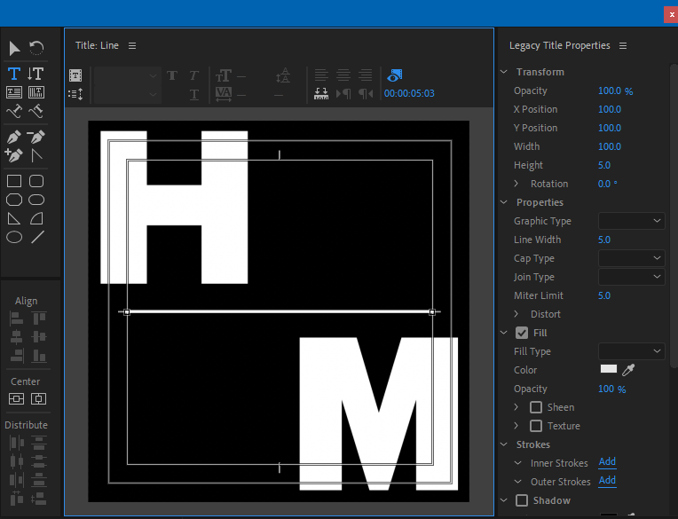 Adding a line graphic within Premiere takes a legacy graphic tool aptly name “Legacy Title”, found in File > New > Legacy Title. After creating the graphic (click “X”), it will be added to your project panel. From there you can add it to the timeline.