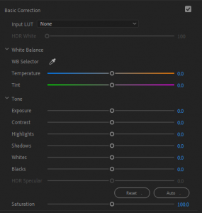 Correcting the color in a clip is as simple as grabbing a proper white balance using Lumetri’s WB Selector. Click the WB Selector tool (color picker) and in the program monitor click on a part of the image that is what should be white. Changes are instant. You can continue to tweak using the sliders in the Lumetri panel, making sure exposure, highlights, shadows, and saturation look how you like.
