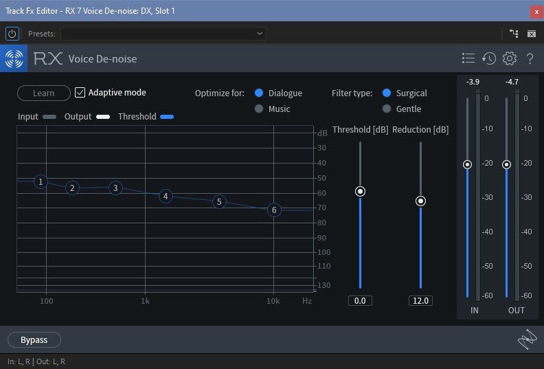 A perfect example on how to use this is reducing noise in dialogue tracks. It’s not uncommon to receive audio with some background noise and in some cases, Premiere’s DeNoise effect can clean that up. In practice, I’ve found that third party plugins do a much better job, like iZotope’s RX Elements Pack. Included in the pack is iZotope’s easy-to-use “De-noise” effect. Simply add the effect to whichever submix needs it and you’re done. De-noise immediately goes into an automatic or adaptive setting, analyzing and cleaning the audio as it’s played. In another word, it’s magic.