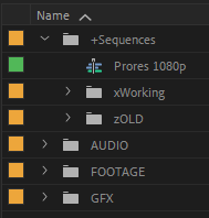 It’s pretty self-explanatory, but one thing to note is my use of “+” and “z” before certain names.  When sorting my project window based on an item’s name, the “+” ensures that item will go to the very top of the bin it lives in and the leading “z” similarly sends those things to the bottom of the bin.
